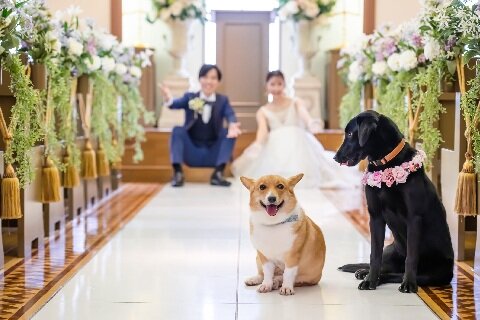 1日1組限定 ペットと一緒に挙式&披露宴が叶うウェディング。愛犬をはじめペットと一緒に結婚式を挙げられる。