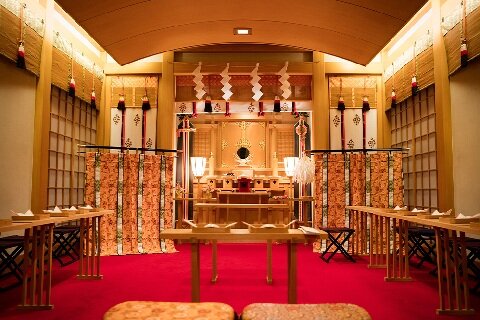 伊勢山皇大神宮の天照皇大神を分祀した神殿で、雅楽の音色に合わせ、大切なご家族の方に見守られての神前結婚式が叶います。